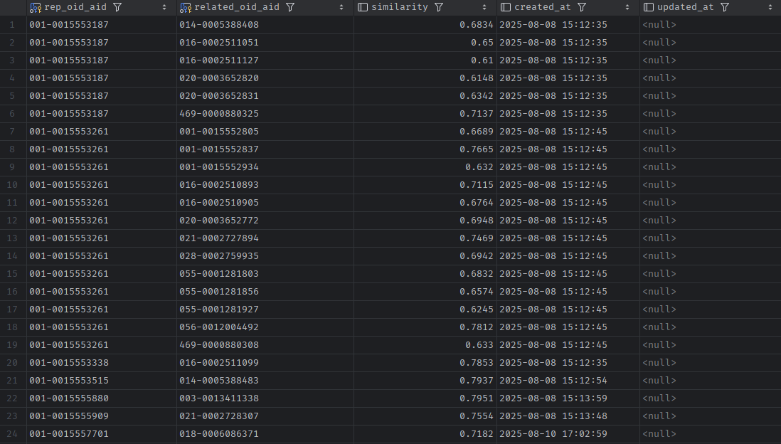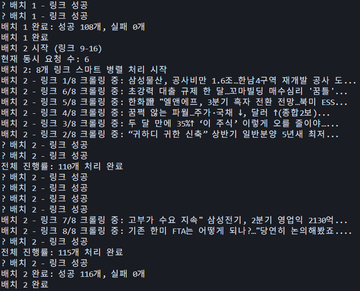 플레이데이터 풀스택 백엔드 9기 21주차 주간회고 및 학습기록 (스물한 번째 기록)중복제거를 마친 뉴스 기사를 db에 저장하는 것까지 구현했다. 이번 주는 체력적, 정신적으로 좀 힘들었다. 크게 코드에 변화를 주지 못하고 개선에 대한 방향만 고민한 거 같다.db에 저장한 결과와 연관뉴스 관계만 따로 db에 저장한 내용을 기록으로만 남기고자 한다.다음과 같이 각 기사의 제목과 카테고리, 링크, 수집 날짜, 작성 날짜, 기자, 신뢰 여부, 이미지 url을 news 테이블에 담았다. 또한 기사 식별을 쉽게 하고 연관 뉴스 관계를 알아보기 쉽게 하려고 기사 링크에서 oid_aid 정보도 가져왔다.oid_aid 정보?네이버 뉴스의 기사들 링크를 보면 https://n.news.naver.com/mnews/arti..